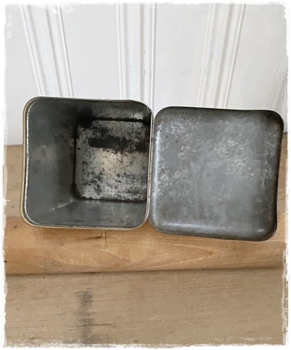 Het blik is bijna 16 cm. hoog x 10 x 10 cm. in het vierkant.