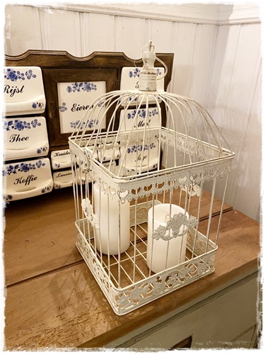 Je kunt de kooi ophangen met bijvoorbeeld een leuke plant erin. Of neerzetten met een kaars erin.