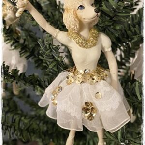 Ornament Poedel ballerina met tule rokje waar pailletten op zitten.