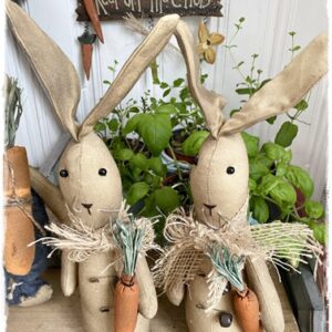 Konijn Josje met belletjesknoopjes, een wortel en een mooie raffiastrik en in een hele oude look.