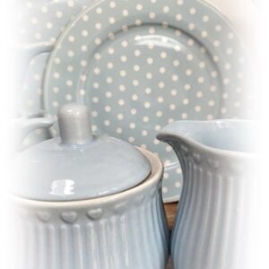 Melkkannetje plus suikerpot met deksel van porcelein lichtblauw