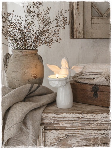 prachtige engel/engeltje kandelaar van keramiek 18 cm. groot x 11,5 cm. (met waxinekaarsje)