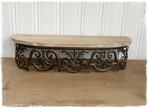 Prachtige oude look wandconsole van hout en sierlijk ijzerwerk.