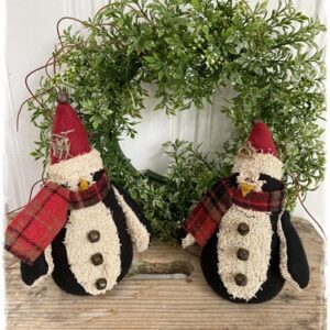 Rinus de stoere kerstpinquin, met 3 belletjes op zijn buik en 1 belletje op zijn muts. 20 cm. groot