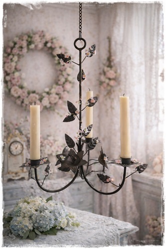 SALE! JDL Kroonluchter zwart voor 3 kaarsen 33 cm. doorsnee, plus lange ketting