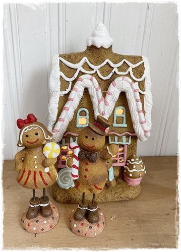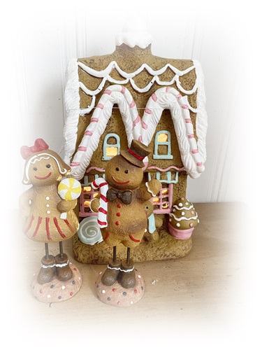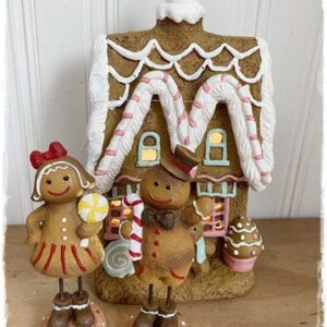De gingerbreadpopjes meisjes en jongens die er bij staan zijn 18 cm. hoog en kosten 7,50 per stuk (apart te bestellen)