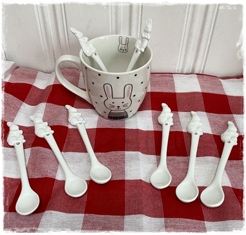 Superlief lepeltje met haasje aan de bovenzijde van porcelein.